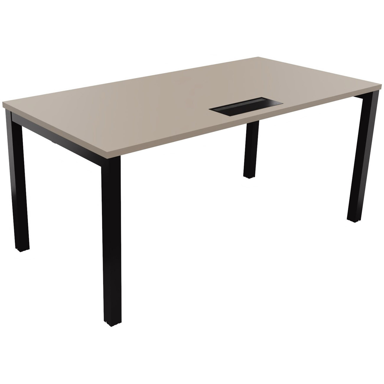 Bureau droit Burocolor avec trappe d'accès - L.160 x P.80 cm - Plateau Argile - Pieds Noir