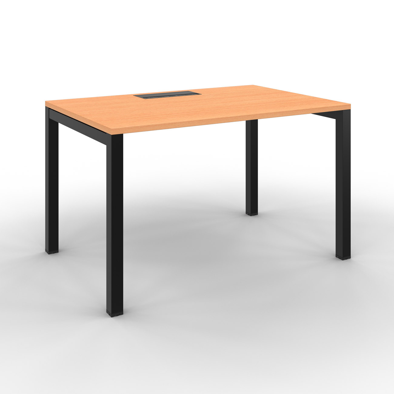 Bureau droit Burocolor avec trappe d'accès - L.120 x P.80 cm - Plateau Hêtre - Pieds Noir