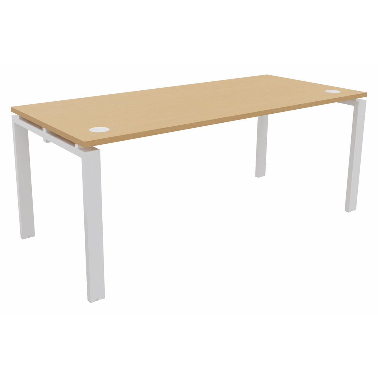 Bureau droit E-link - L.180 x P.80 cm - Plateau Hêtre - Pieds Blanc