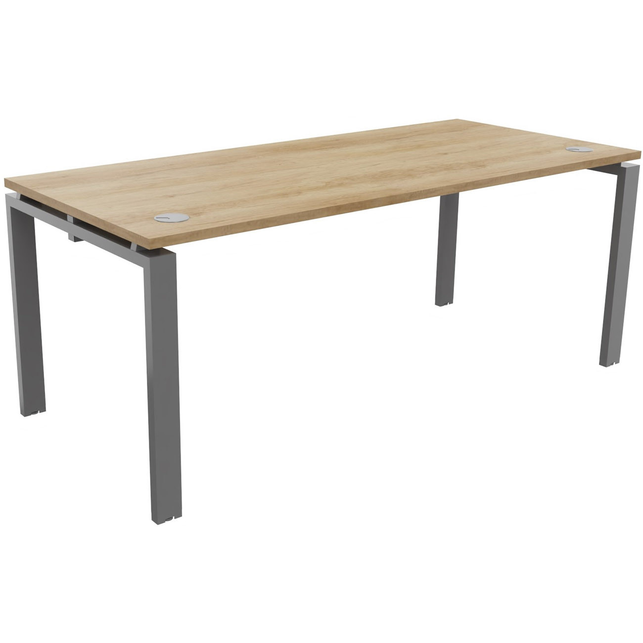 Bureau droit E-link - L.180 x P.80 cm - Plateau Chêne Nebraska - Pieds Aluminium