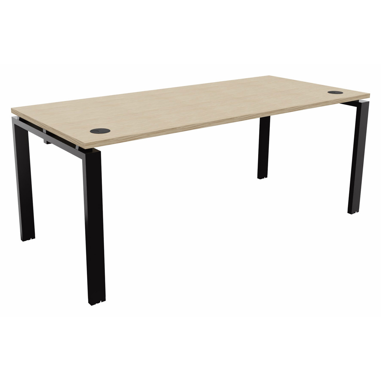 Bureau droit E-link - L.180 x P.80 cm - Plateau Hêtre - Pieds Noir