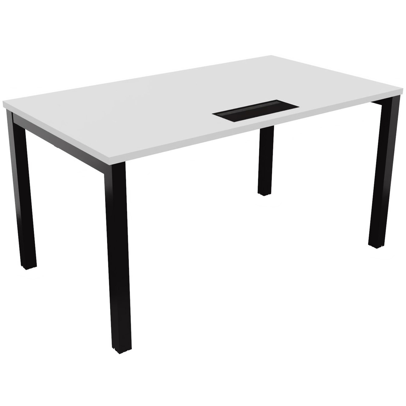 Bureau droit Burocolor avec trappe d'accès - L.140 x P.80 cm - Plateau Blanc - Pieds Noir