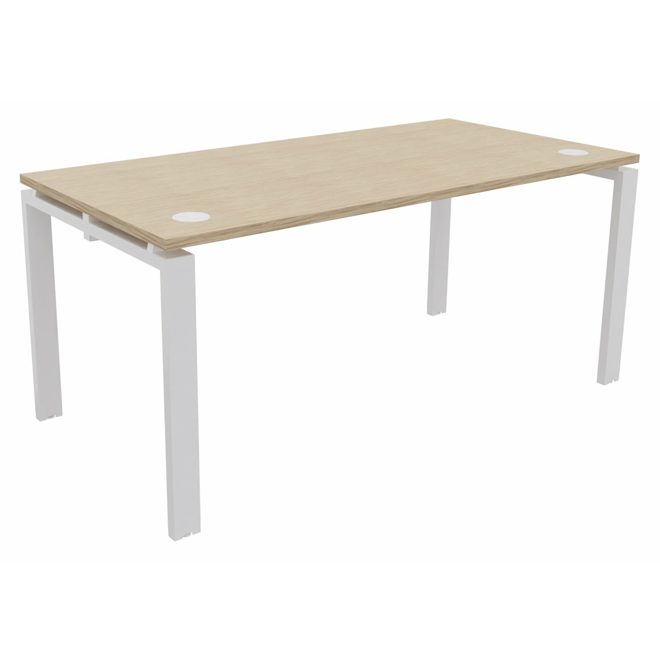 Bureau droit E-link - L.160 x P.80 cm - Plateau Chêne - Pieds Blanc