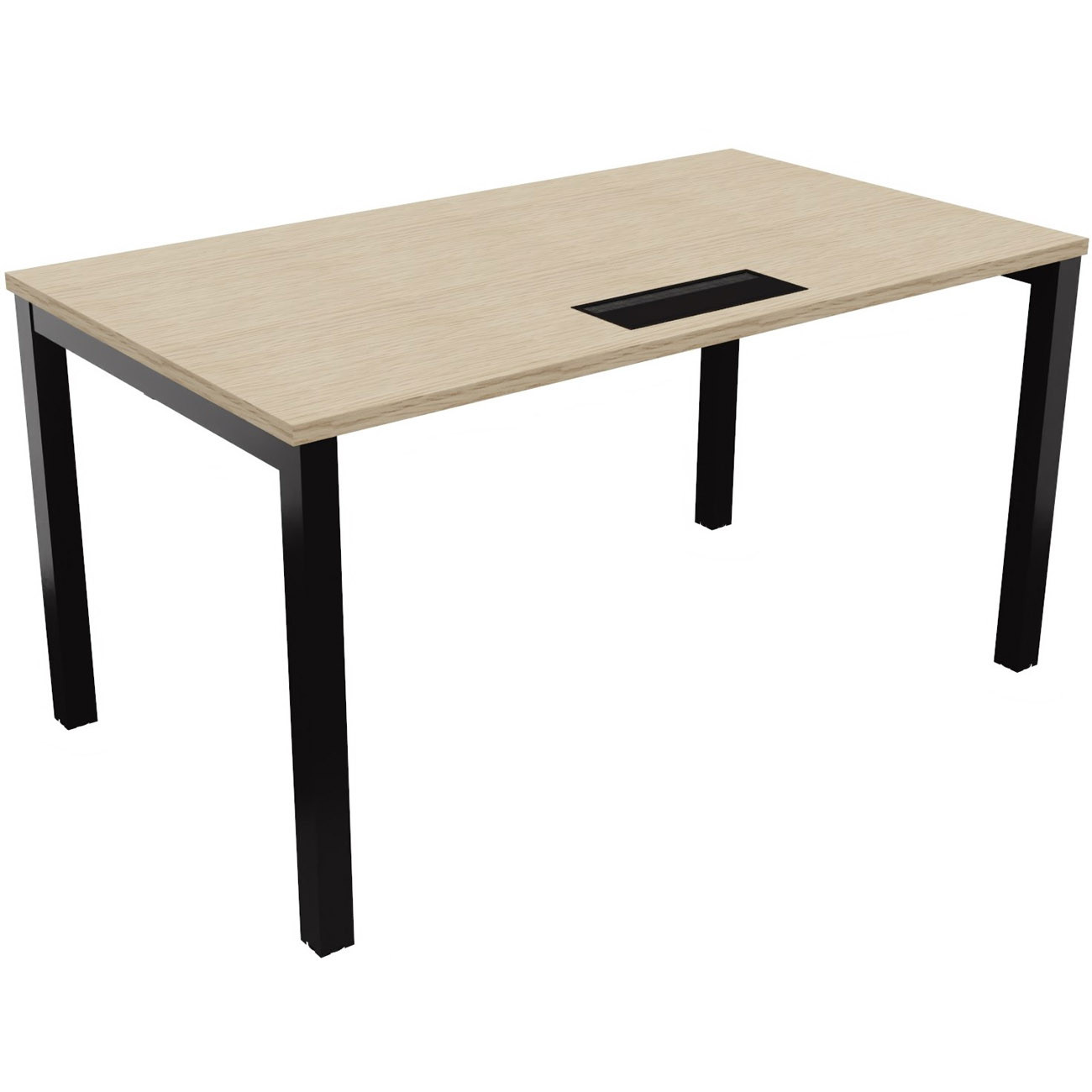 Bureau droit Burocolor avec trappe d'accès - L.140 x P.80 cm - Plateau Chêne Nebraska - Pieds Noir