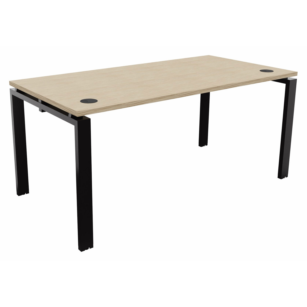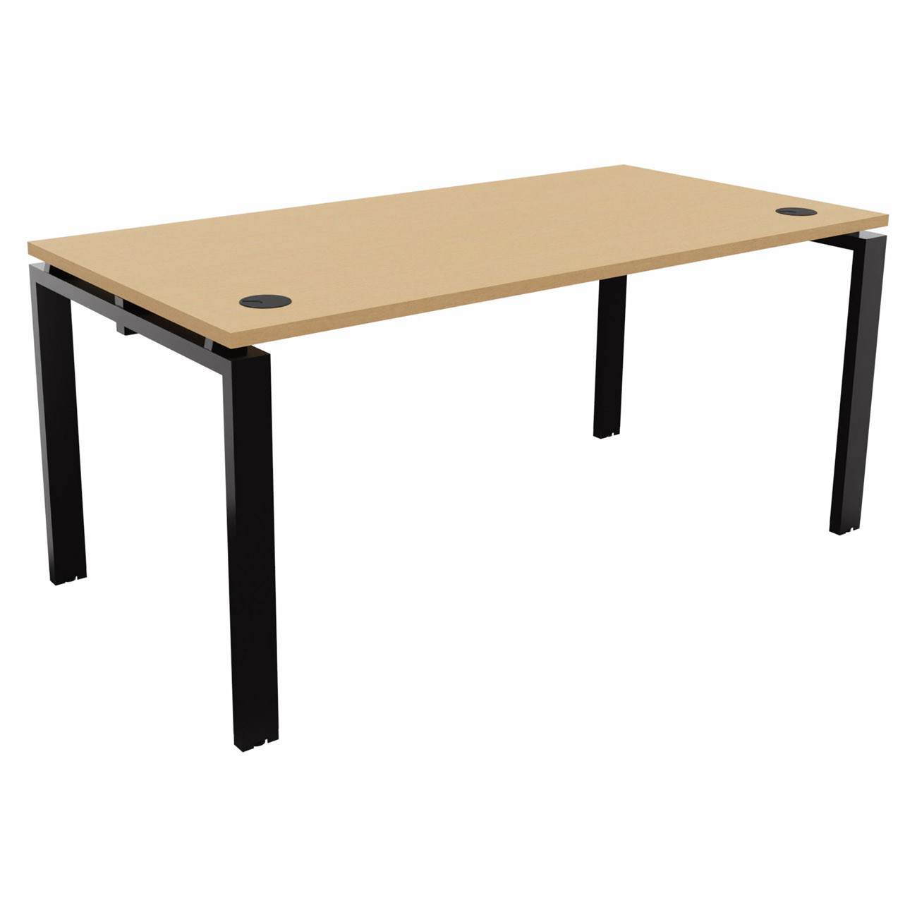 Bureau droit E-link - L.160 x P.80 cm - Plateau Hêtre - Pieds Noir