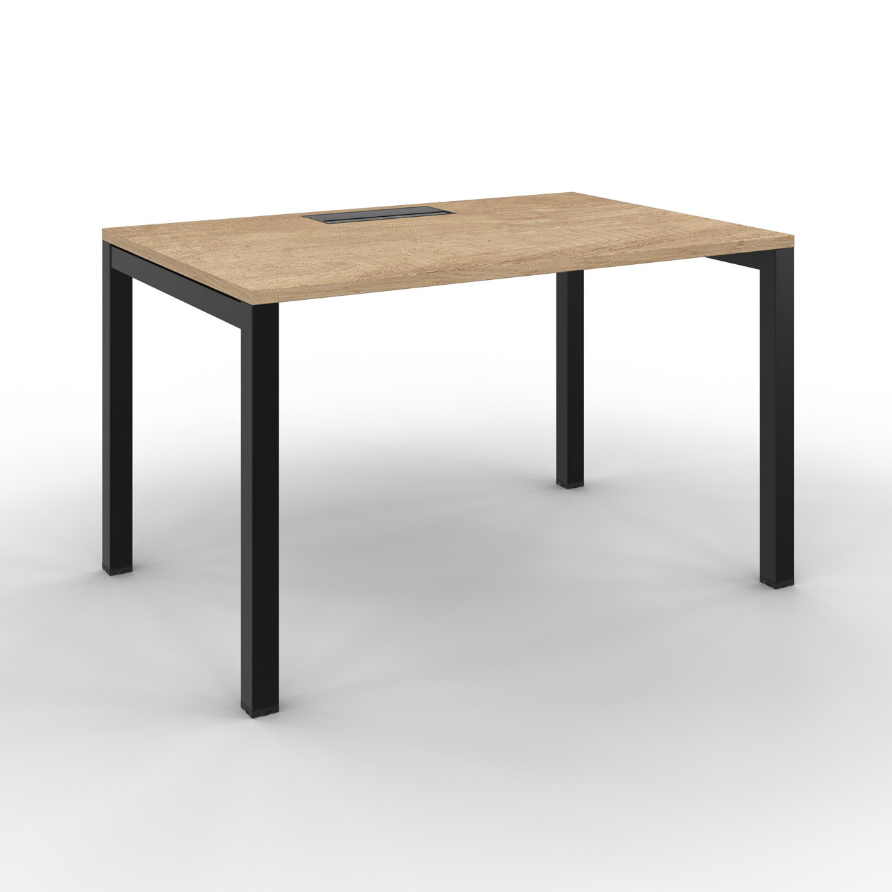 Bureau droit Burocolor avec trappe d'accès - L.120 x P.80 cm - Plateau Chêne - Pieds Noir