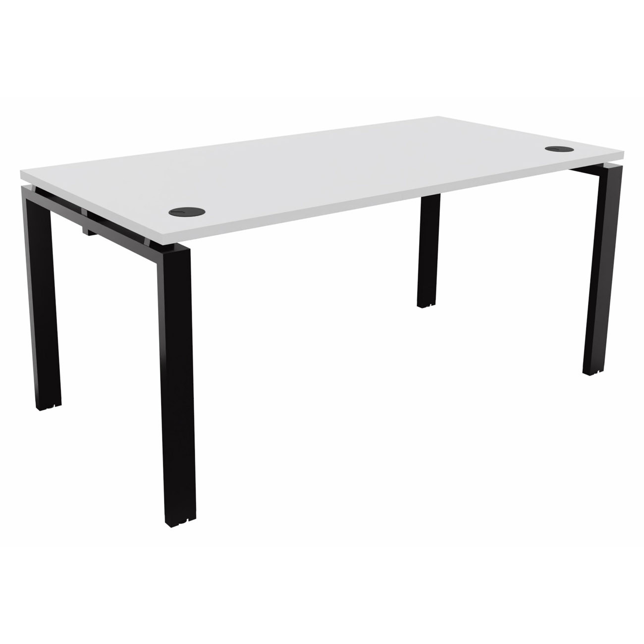 Bureau droit E-link - L.160 x P.80 cm - Plateau Blanc - Pieds Blanc