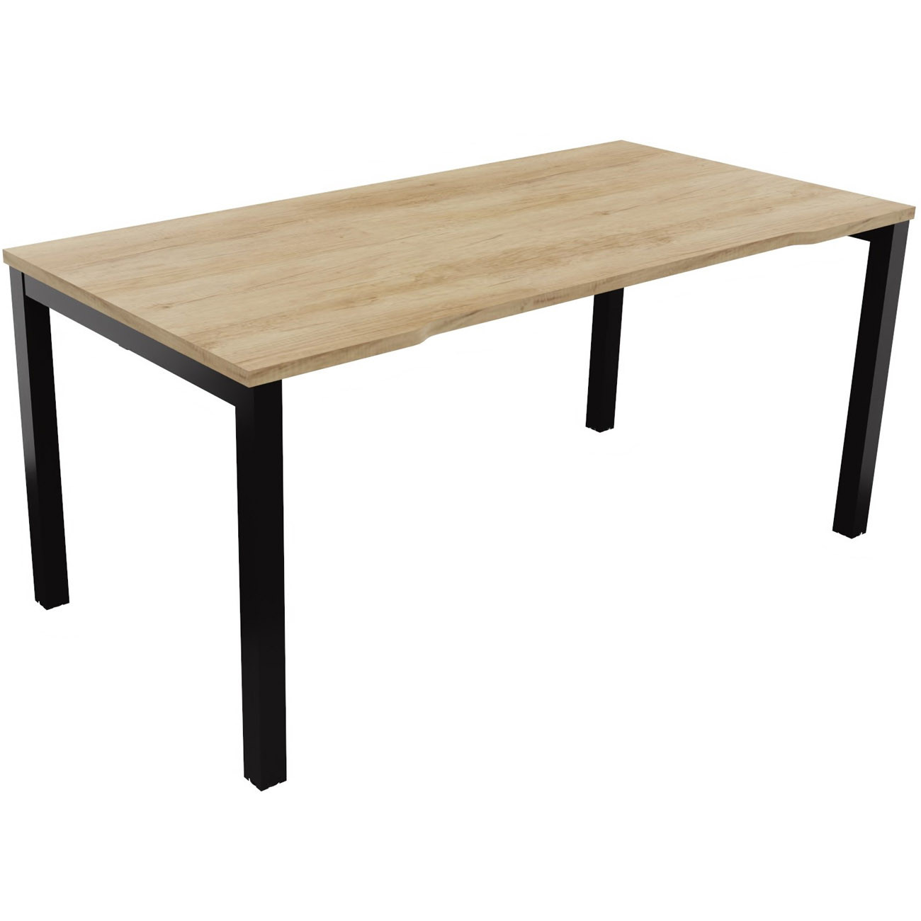 Bureau droit échancré Burocolor - L.160 x P.80 cm - Plateau Chêne Nebraska - Pieds Noir