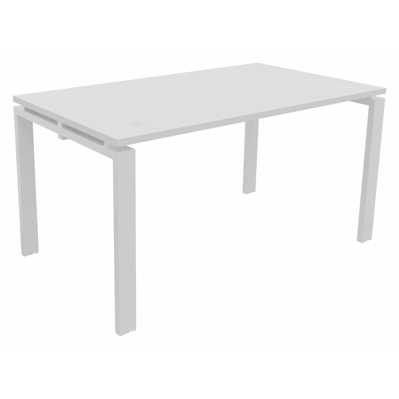 Bureau droit E-link - L.140 x P.80 cm - Plateau Blanc - Pieds Blanc