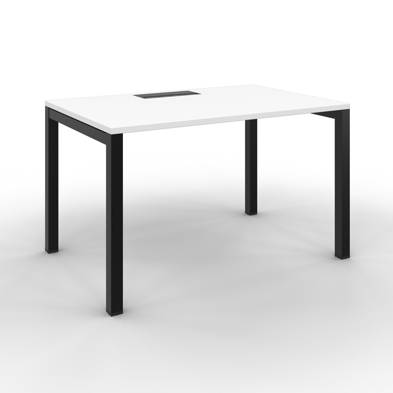 Bureau droit Burocolor avec trappe d'accès - L.120 x P.80 cm - Plateau Blanc - Pieds Noir