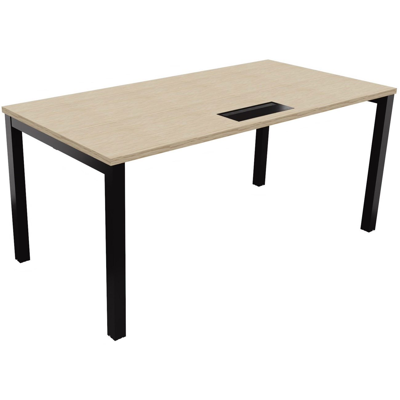 Bureau droit Burocolor avec trappe d'accès - L.160 x P.80 cm - Plateau Chêne - Pieds Noir