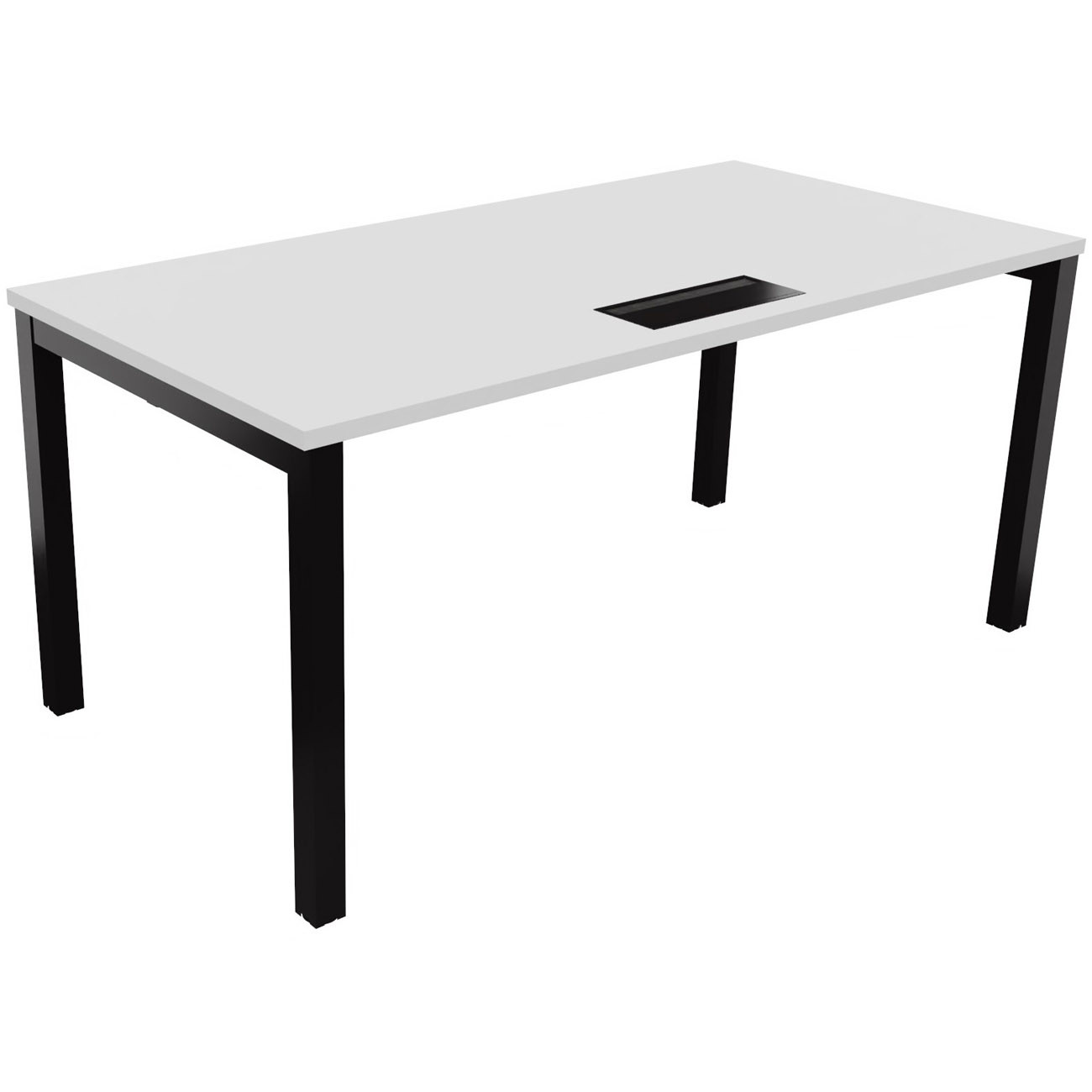 Bureau droit Burocolor avec trappe d'accès - L.160 x P.80 cm - Plateau Blanc - Pieds Noir