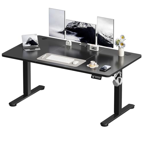 FEZIBO Bureau Debout Électrique Réglable en Hauteur, Table de 152 x 60 cm, Bureau de Travail Assis-Debout avec Panneau d'Assemblage, Cadre Noir/Plateau Marron