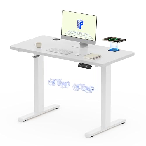 FLEXISPOT Bureau Assis Debout avec Recharge sans Fil,2 Moteurs Puissants,Charge 80kg,Bureau Électrique Réglable en Hauteur Stable, Table Debout avec Fonction Mémoire et Anti-Collision,110x54cm,Blanc