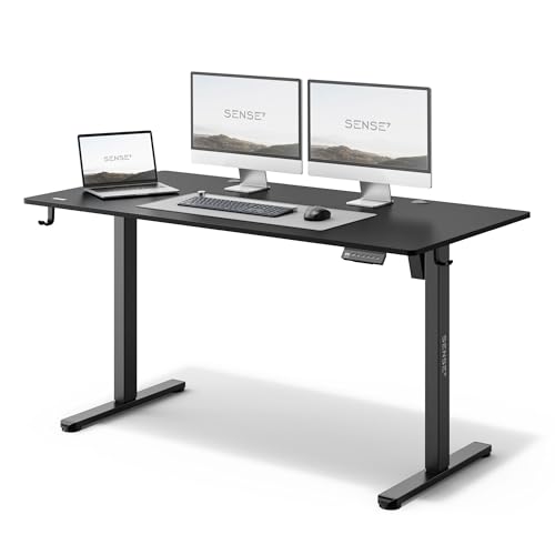 SENSE7 NOJO Bureau électrique, réglable en hauteur 140 x 70 cm, pour PC et jeu, avec passe-câbles et support pour casque, réglage silencieux de la hauteur pour votre bureau debout parfait