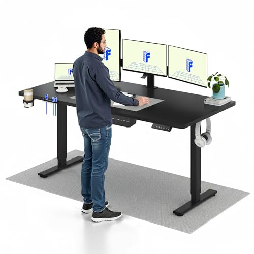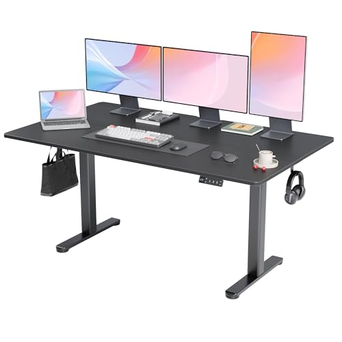 FLEXISPOT Bureau Assis Debout Électrique Basic 140x60cm, Bureau Réglable Électrique en Hauteur avec Plateau Noir, Table d'ordinateur avec Crochet, Fonction Mémoire, pour Table et Chambre