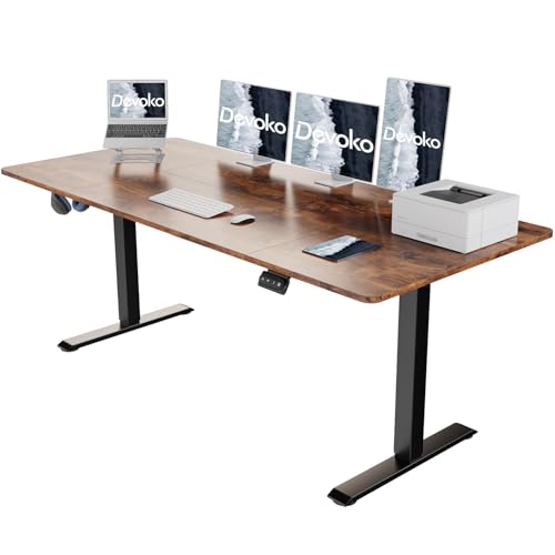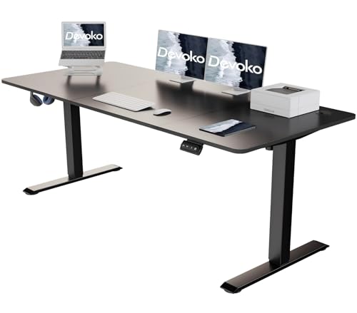 Devoko Bureau Assis Debout électrique réglable en Hauteur 180 x 80 cm avec tiroirs, Port de Charge USB-A d'ordinateur avec Plateau de Gestion des câbles sur Pied avec 3 Fonctions mémoire Noir