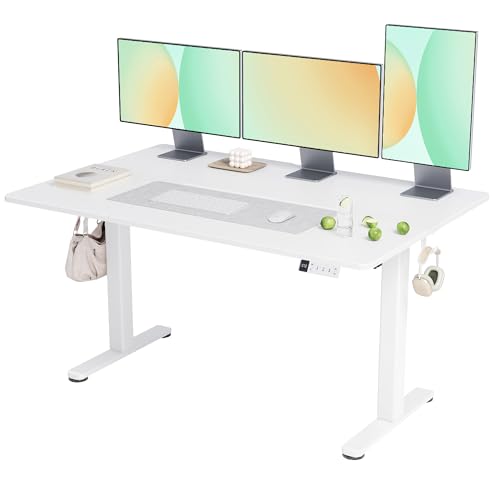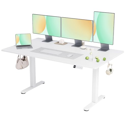 FLEXISPOT Bureau Assis Debout Électrique 160x60cm, Bureau Réglable Électrique en Hauteur avec Plateau Blanc, Table d'ordinateur avec Crochet, Fonction Mémoire, pour Bureau, Télétravail