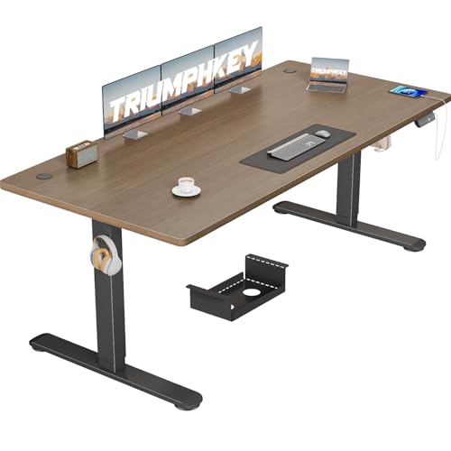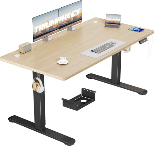 TRIUMPHKEY Bureau électrique réglable en hauteur 140 x 70 cm, prise USB, 3 contrôle mémoire, bureau et maison, bureau debout