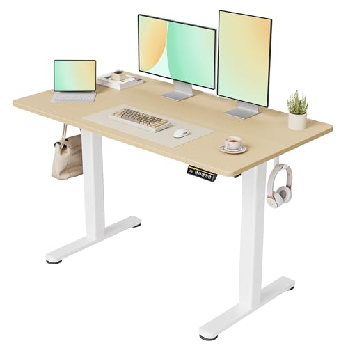 FLEXISPOT Bureau Assis Debout Électrique Basic 140x60cm, Bureau Réglable Électrique en Hauteur avec Plateau Érable, Table d'ordinateur avec Crochet, Fonction Mémoire, pour Table et Chambre