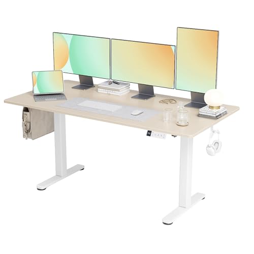 FLEXISPOT Bureau Assis Debout Électrique 160x60cm, Bureau Réglable Électrique en Hauteur avec Plateau Érable, Table d'ordinateur avec Crochet, Fonction Mémoire, pour Bureau, Télétravail