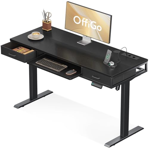 OffiGo Bureau Assis Debout avec tiroirs, 120 cm Bureau Réglable électrique avec Tablette pour Clavier,Standing Desk, Noir