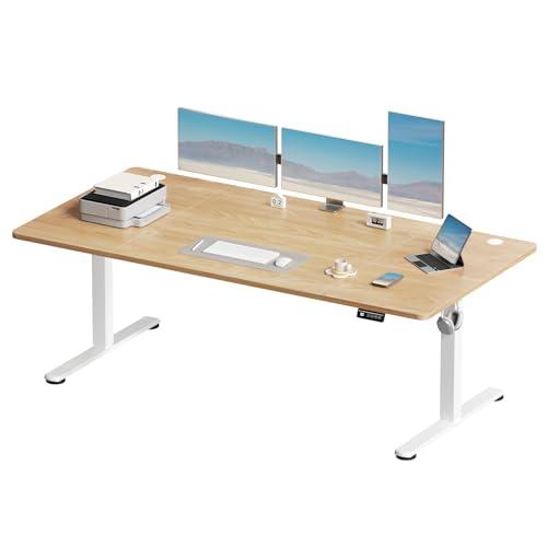SANODESK +1660 Bureau Assis Debout Électrique Bureau Debout Réglable en Hauteur avec Crochet Fonction Mémoire(Cadre Blanc+Plateau Érable)