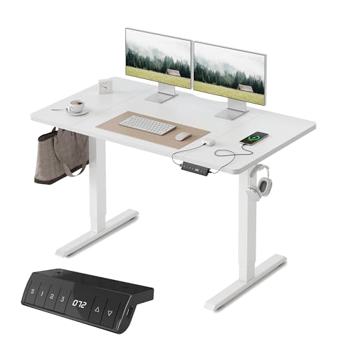 FEZIBO Bureau Assis Debout avec Ports de Charge USB-A et USB-C - 120 x 60 cm - Bureau électrique réglable en Hauteur - Standing Desk - Blanc