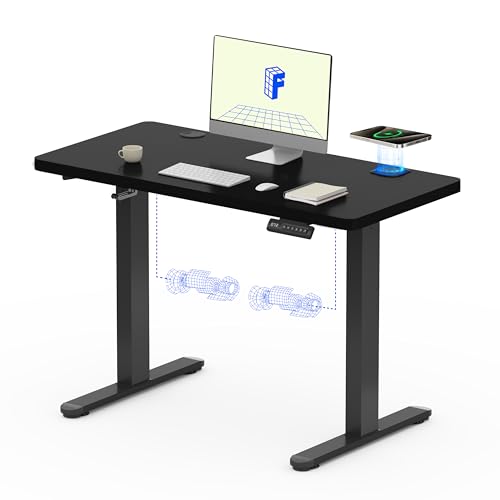 FLEXISPOT Bureau Assis Debout avec Recharge sans Fil,2 Moteurs Puissants,Charge 80kg,Bureau Électrique Réglable en Hauteur Stable, Table Debout avec Fonction Mémoire et Anti-Collision,110x54cm,Noir