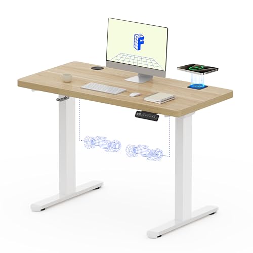 FLEXISPOT Bureau Assis Debout avec Recharge sans Fil,2 Moteurs Puissants,Charge 80kg,Bureau Électrique Réglable en Hauteur Stable, Table Debout avec Fonction Mémoire et Anti-Collision,110x54cm,Érable