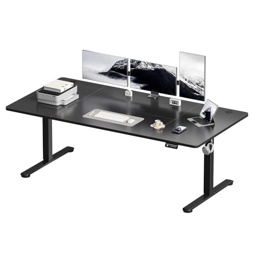 FEZIBO Bureau Électrique Réglable en Hauteur avec Ports de Charge USB-A et USB-C, 100 × 60 cm, Bureau Assis Debout, Ergonomique pour Télétravail, Noir