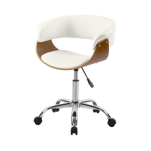 Chaise de bureau pivotante en bois et PU blanc - Basile blanc Unique