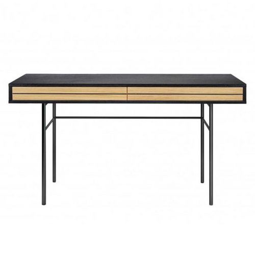 Bureau 2 Tiroirs en Bois Stripe 130cm Chêne & Noir