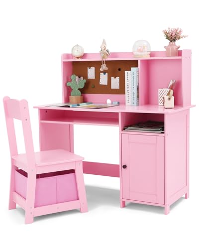 JOYLDIAS Bureau en bois pour enfants avec chaise, table d'apprentissage multifonctionnelle pour enfants avec étagères et espace de rangement / rose