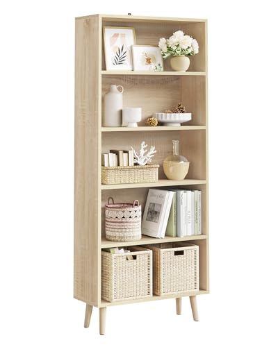 WOLTU Bibliothèque à 5 Casiers Ouverts, Étagère sur Pied à 5 Niveaux, Meuble de Rangement Multifonctionnel pour Salon, Chambre, Bureau, en Bois d'Ingénierie, Chêne Clair, 60x24x144cm, SK022hei