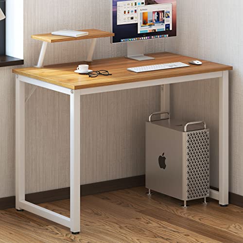 SogesHome Bureau d'ordinateur Table PC de Bureau en Bois et Acier Postes de Travail Informatique pour Ordinateur, 100 x 50 x 75 cm