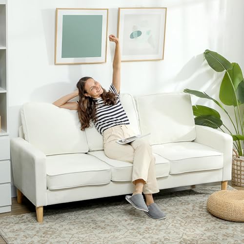 HOMCOM Canapé 3 Places en Velours, Design Moderne, avec Coussins épais et Assise capitonnée, canapé pour Salon Chambre Bureau, Pieds en Bois d'hévéa, crème