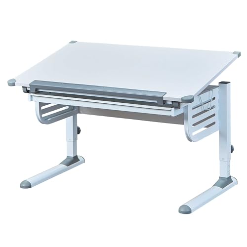 Inter Link - Bureau réglable en Hauteur - Bureau Enfant - Bureau élève - Tiroir avec Fonction Push - Plan de Travail inclinable - Rangement pour Cartable - en métal Gris/Blanc - Skalare