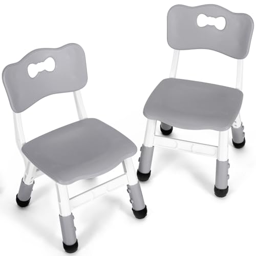 2PCS Chaise de Bureau Enfant Réglable en Hauteur - Tabouret Plastique Capacité 100kg pour Fille Garcon, Chambre/École/Garderie, Gris