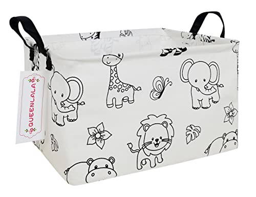 QUEENLALA Panier à linge rectangulaire pliable pour chambre d'enfant, panier à linge pour organisation/rangement de jouets pour enfants, bureau, chambre, placard (Rec-zoo)