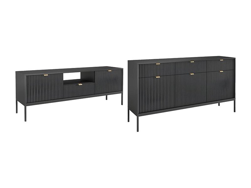 Vente Unique Ensemble buffet et meuble TV noir Séjour contemporain LIOUBA