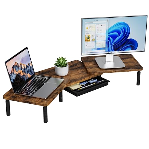 Bibliothèque de bureau extensible en bambou, étagère avec 2 tiroirs, bois naturel, à monter soi-même