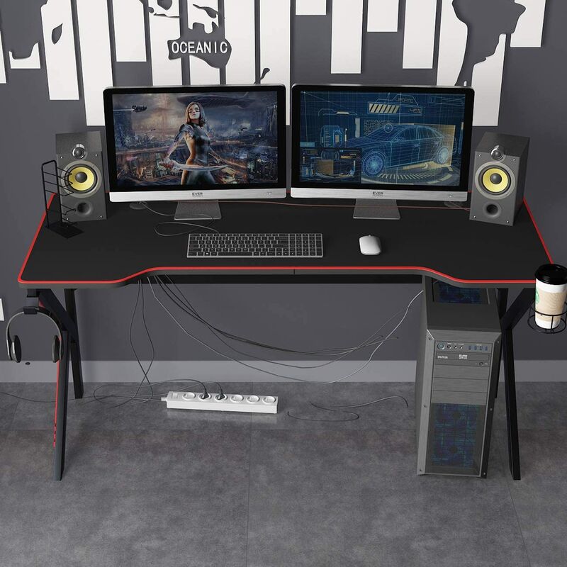 Bureau Gamer - Bureau Informatique Ergonomique - Bureau Gaming, Table de Jeu pour Ordinateur PC Domicile avec Grand Tapis de Souris, Porte Gobelet et