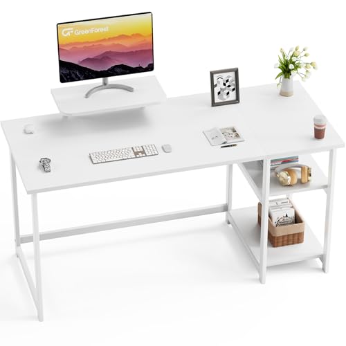 GreenForest Bureau avec Rangement,Petite Bureau d’Ordinateur avec Support de Moniteur, Bureau Gaming avec Étagères de Réversibles, 140cm Bureaux à Domicile et Postes de Travail Informatiques,Blanc Pur