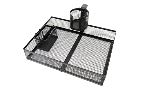 DESKORGA Organisateur de Bureau Rotatif 360° – Rangement en Maille Métal Solide (34×25×7 cm) – Support Téléphone, Gobelet, Câbles – Idéal pour Télétravail, Gaming, Étudiants