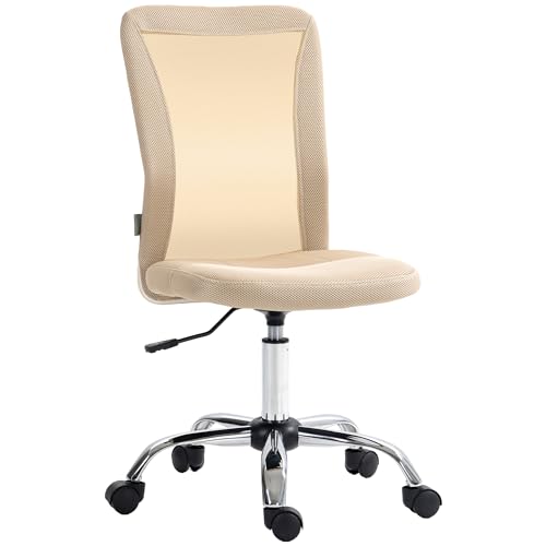 Vinsetto Chaise de Bureau Ergonomique Fauteuil de Bureau Hauteur réglable piètement chromé pivotant 360° revêtement Maille Beige