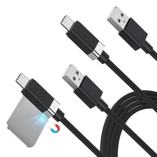 Magtame StayCable - Lot de 2 câbles magnétiques USB A vers USB C - 1,5 m - 3 A 27 W - Charge rapide de type C - Anti-chute - En nylon tressé - Pour lit, bureau, voiture