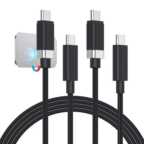 Magtame StayCable - Lot de 2 câbles magnétiques USB C vers USB C - 1 m - 3 A 60 W - Charge rapide de typeC - Anti-chute - En nylon tressé - Pour lit, bureau, voiture
