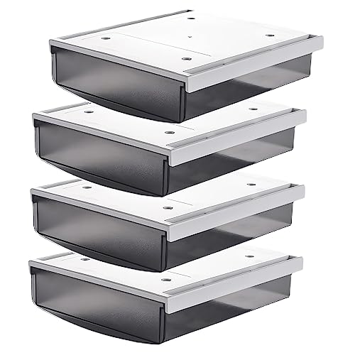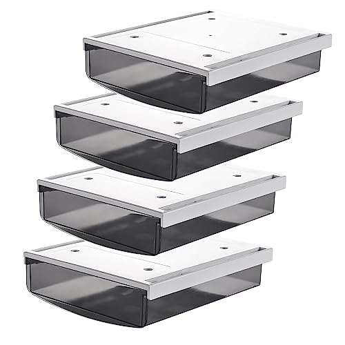 TUKA-i-AKUT 4X 3,5L Tiroirs Sous Bureau, 24x21x8cm Autocollant Boîte à Tiroirs Cachée, Organisateur Boîte de Rangement pour Bureau/Meuble/Bibliothèque/Armoire de Cuisine, 4 Unités Givré Noir TKD8606