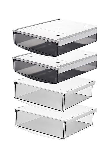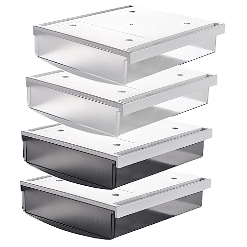 TUKA-i-AKUT 4X 3,5L Tiroirs Sous Bureau, 24x21x8cm Autocollant Boîte à Tiroirs Cachée Organisateur pour Bureau/Meuble/Bibliothèque/Armoire de Cuisine, 4 Unités Givré Translucide + Noir TKD8606